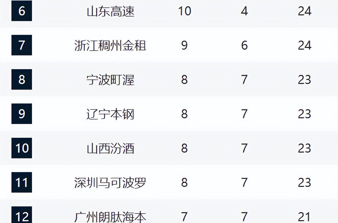 广州则排在第12,他们这轮溃败浙江,但本赛季晋级季后赛的可能性依然存在。