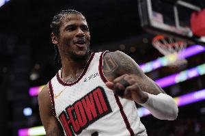 此役,杰伦-格林出战35分半,投篮20中8,三分10中4,罚球3中1,得到21分8篮板6助攻。